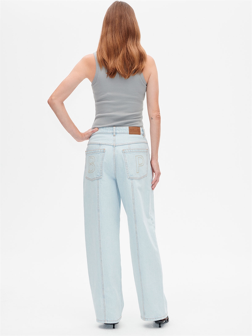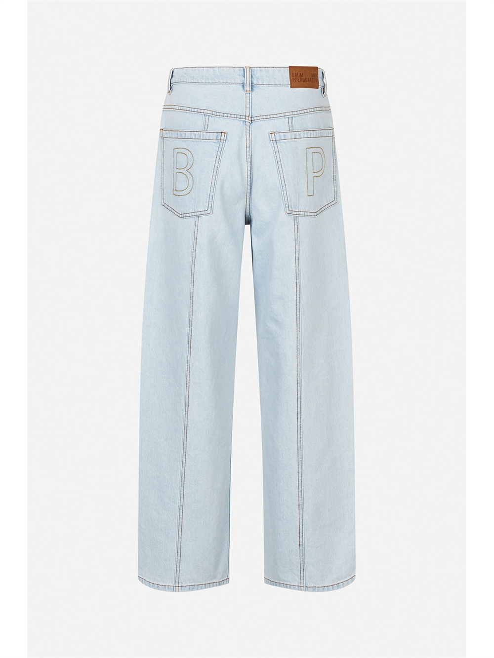Jeans fra Baum und Pferdgarten. Jeansene har høj talje, vide ben. De lukkes med lynlås og knap. Bukserne har fem lommer og en smule stretch.