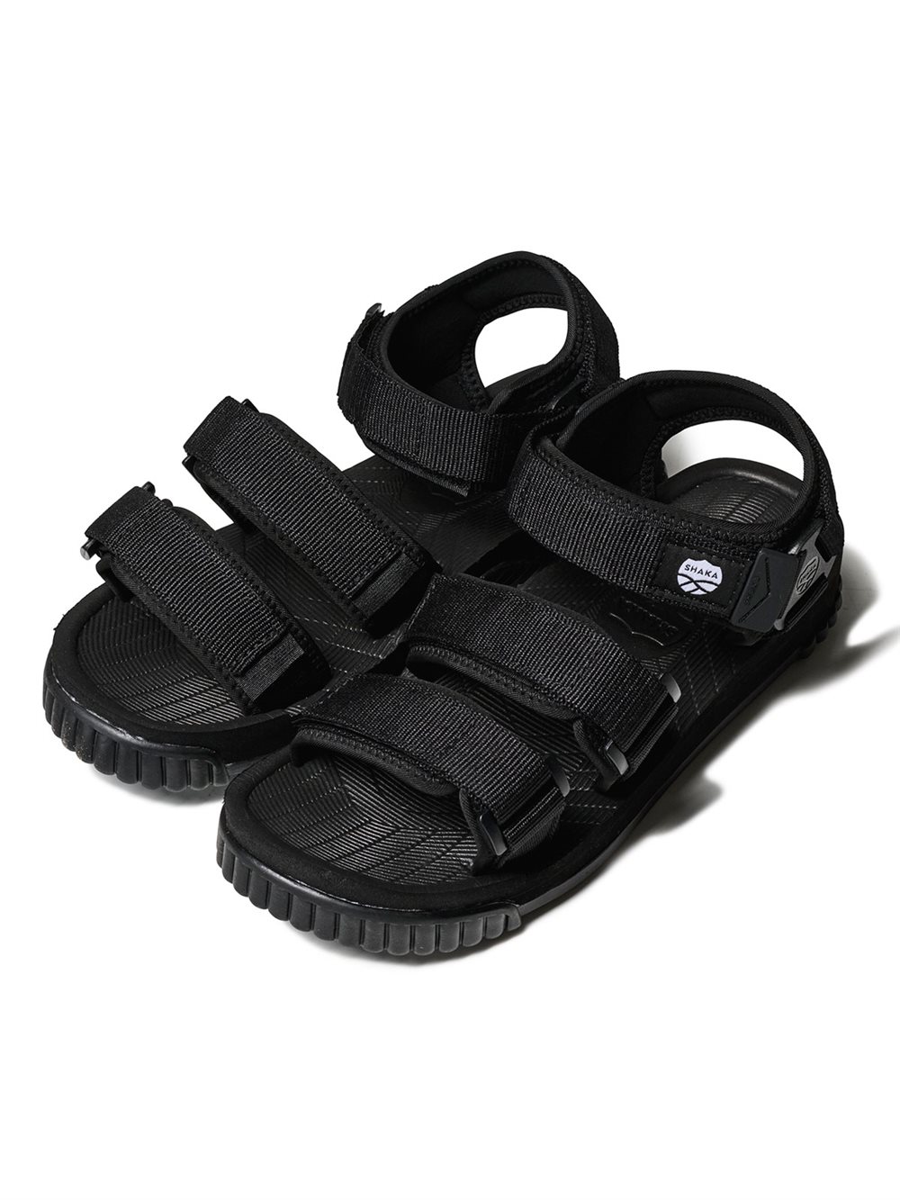 Sandal fra Shaka. Sandalen har tre stropper der lukkes med nylon stropper samt velcro. De har neopren under stropperne som gør dem ekstra behagelige at have på.