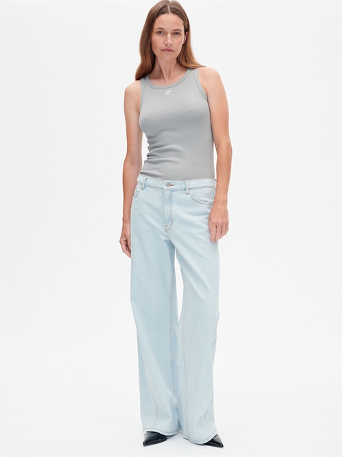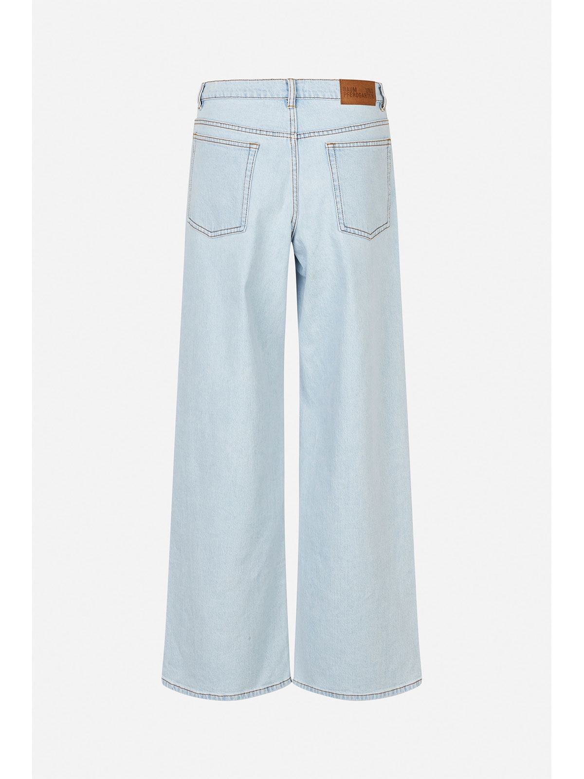Jeans fra Baum und Pferdgarten. Jeansene har høj talje, vide ben. De lukkes med lynlås og knap. Bukserne har fem lommer og en smule stretch.