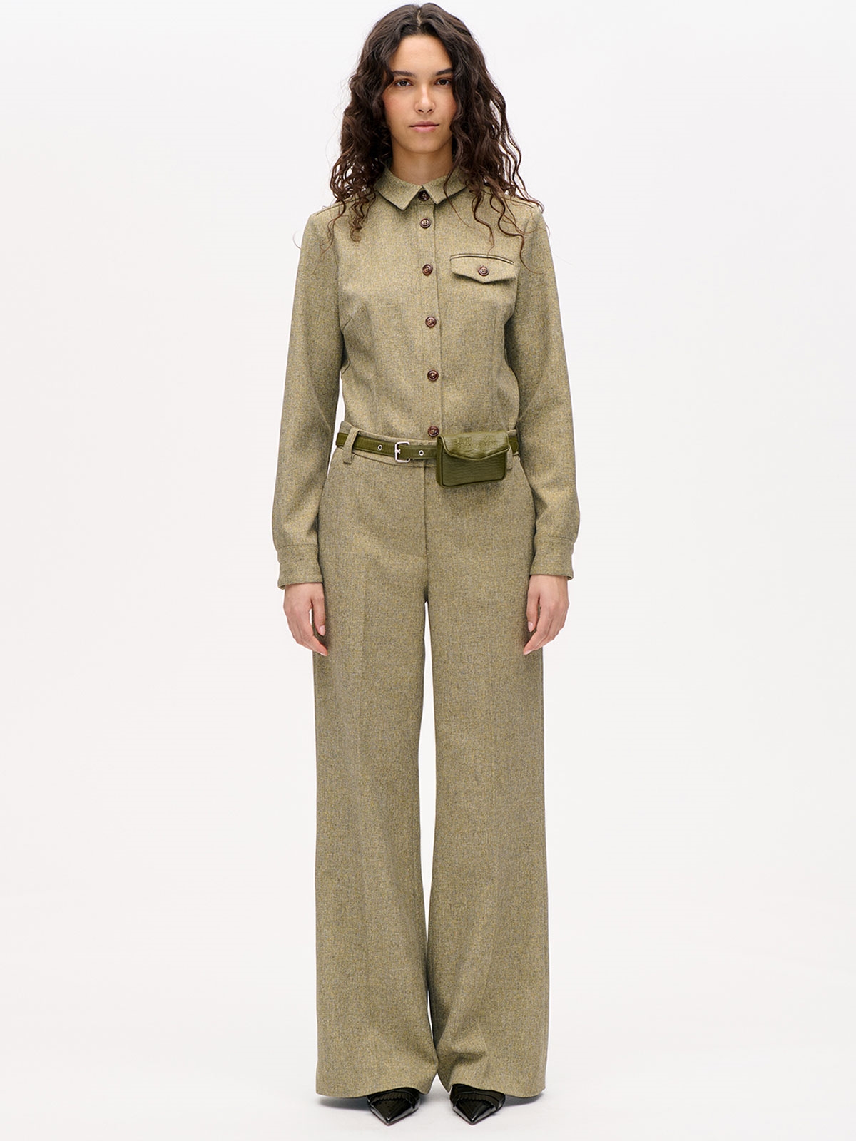 Skræddersyet tweedbukser fra Baum und Pferdgarten. Bukserne har mellemhøj talje og ekstra lange slanke ben. De lukkes med lynlås og hægte. Bukserne har bæltestropper, sidelommer samt pyntelommer bagpå. Tætsiddende pasform øverst.