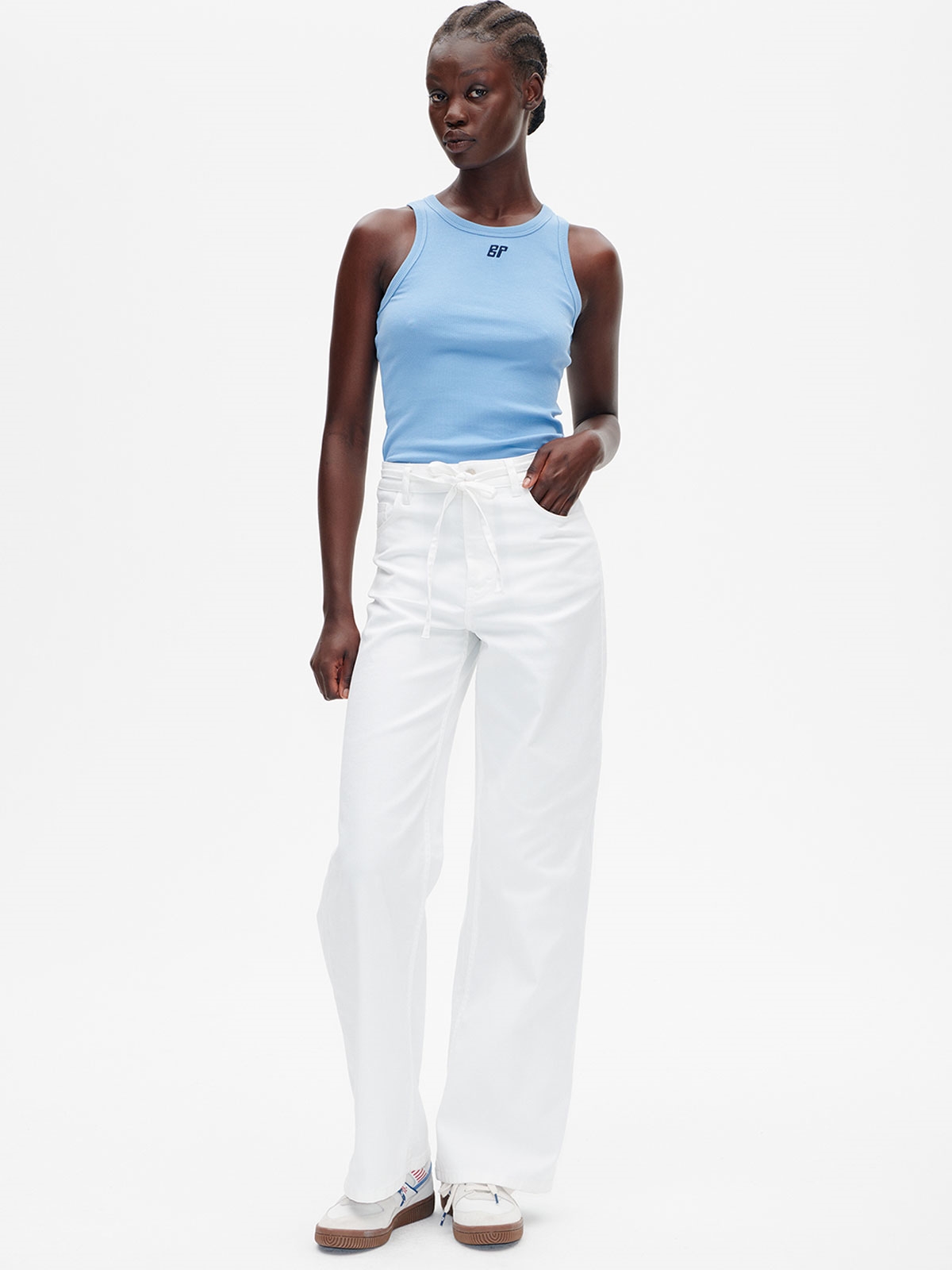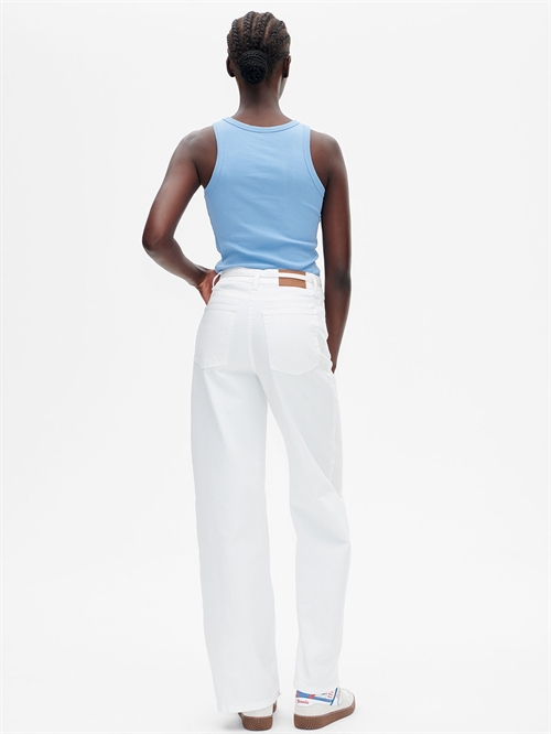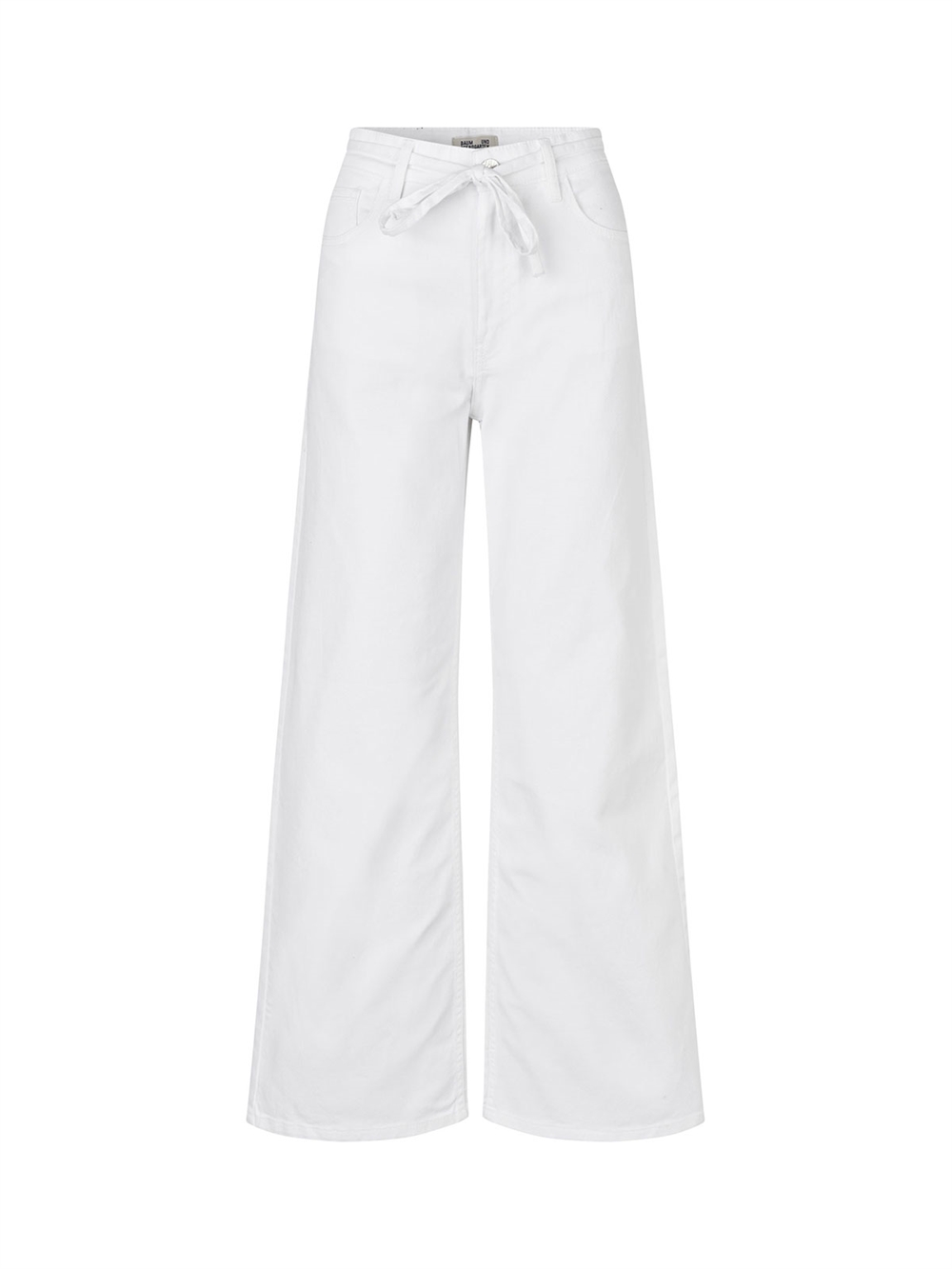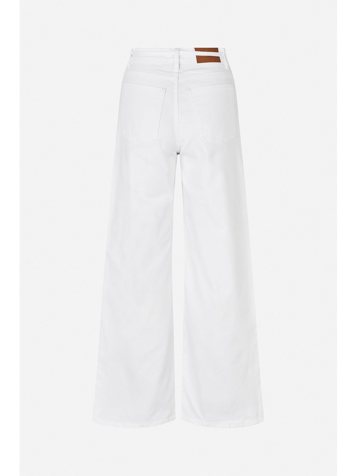 Jeans fra Baum und Pferdgarten. Jeansene har høj talje og vide ben. De lukkes med lynlås og knap. Bukserne har fem lommer og en smule stretch. De har bæltestropper og aftagelig bælte.