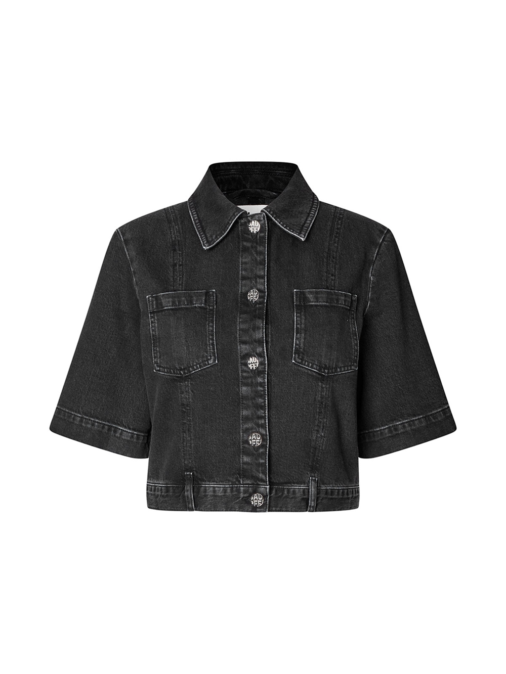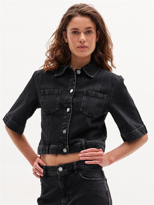 Skjorte fra Baum Und Pferdgarten. Skjorten har krave og den lukkes med knapper. Den har to bryst lommer.