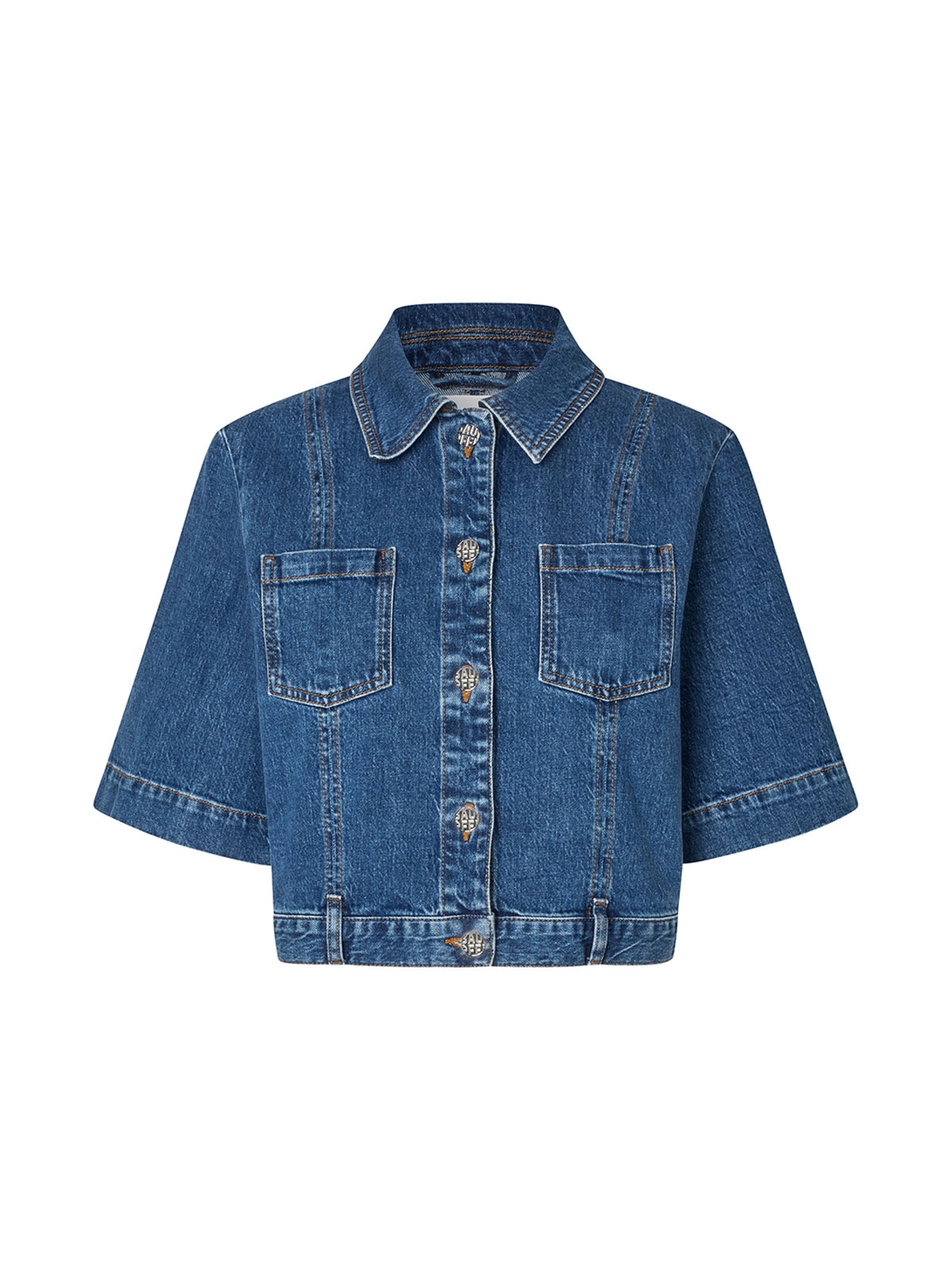Skjorte fra Baum Und Pferdgarten. Skjorten har krave og den lukkes med knapper. Den har to bryst lommer.