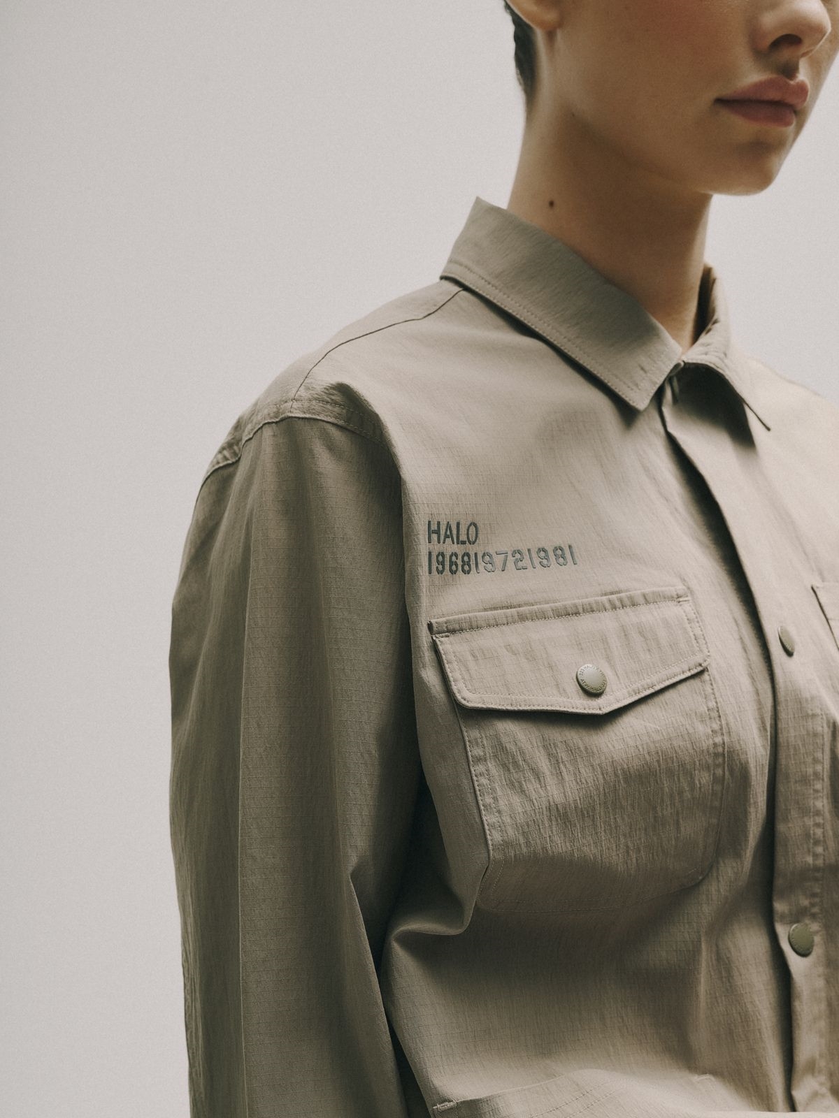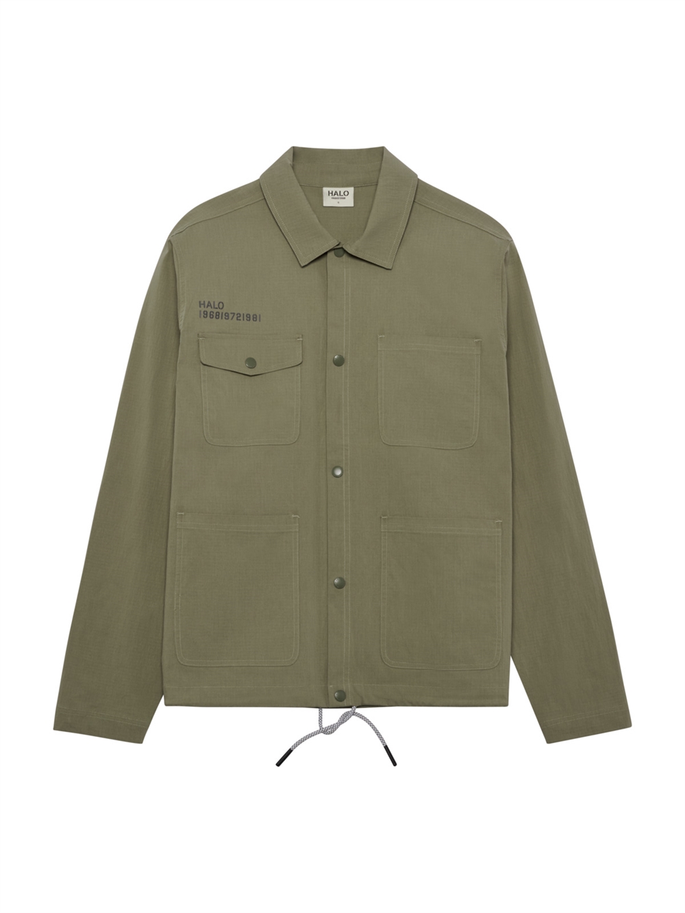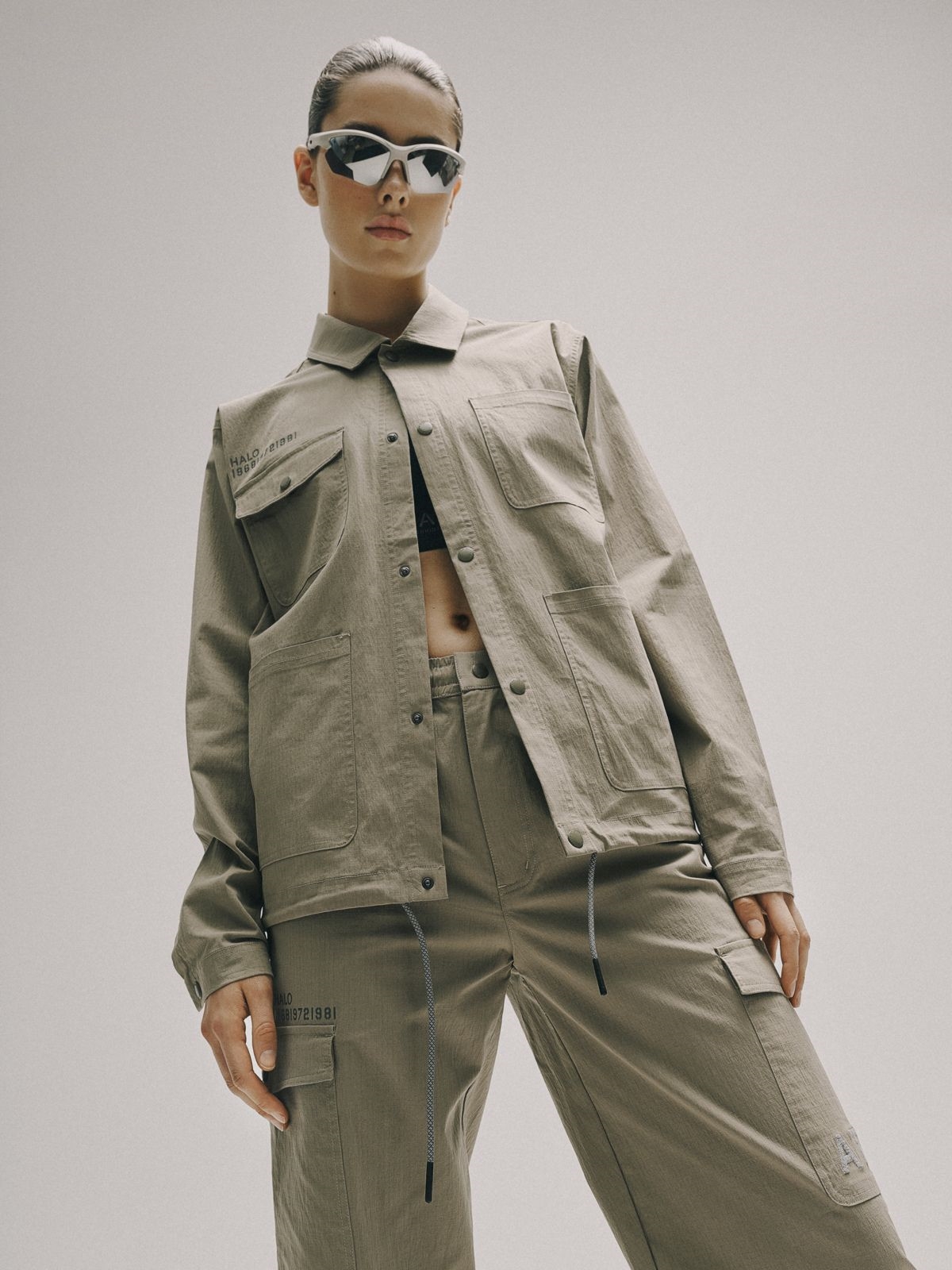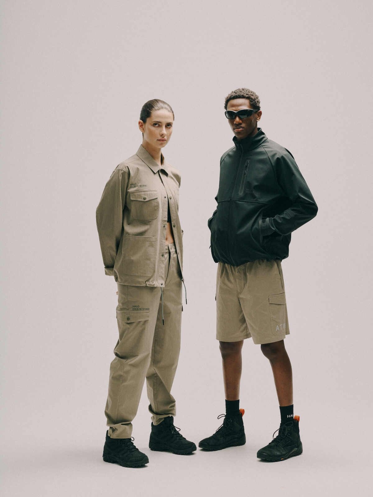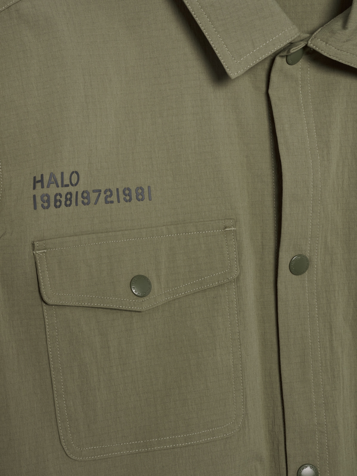 Skjorte fra HALO. Bukserne har logo og tryk på lårene. De har elastik og snøre i taljen og skrå lommer i siderne samt lommer på lårene.