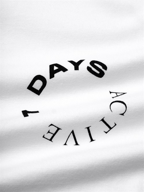 T-shirt fra 7 Days Active. Denne tee har rund hals, korte ærmer og sort logo printet på brystet
