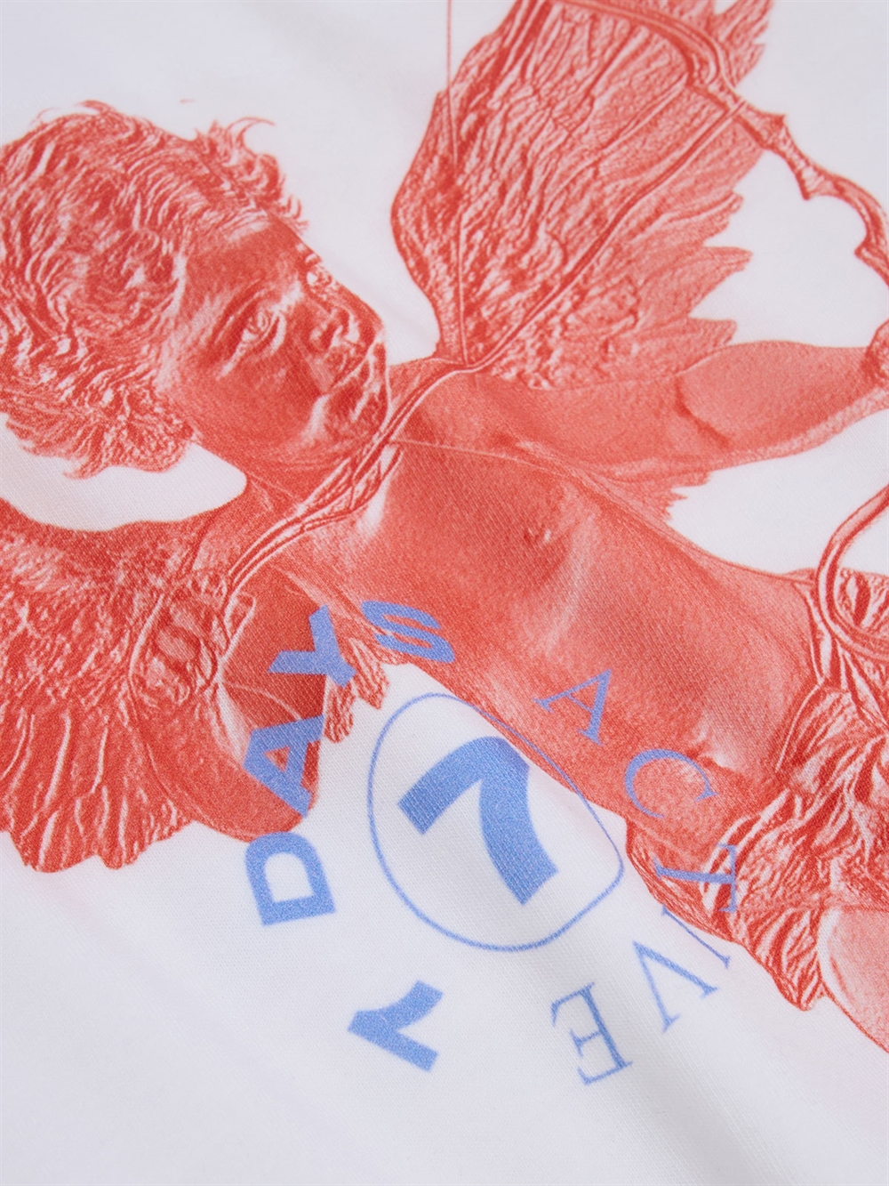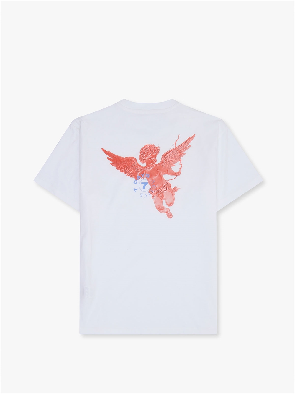 T-shirt fra 7 Days Active. Denne tee har rund hals og korte ærmer. T-shirten har rundt logo samt engel trykt på ryggen. Normal pasform