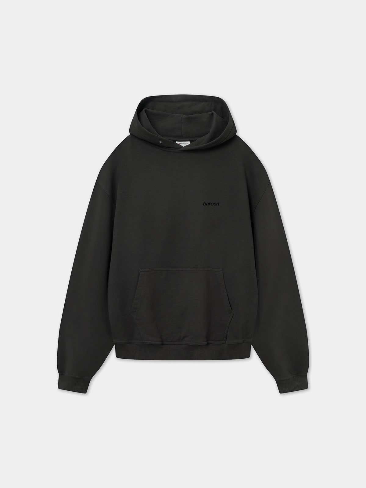 Hoodie fra Bareen. Denne hoodie har hætte med snøre, lange ærmer og lomme foran. Den har logo foran og på ryggen.