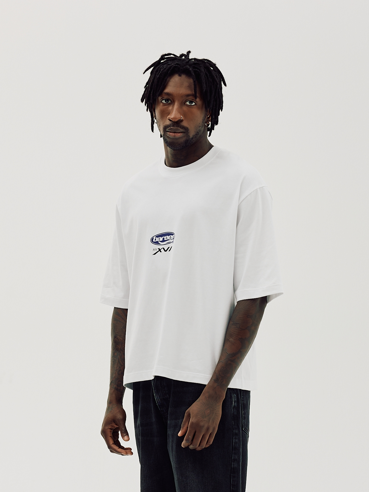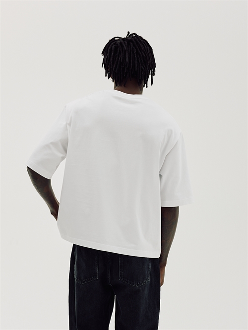 T-shirt i kraftig og blød bomuld fra Bareen. Denne tee har rund hals og korte ærmer med drop shoulders. Den har logo på brystet. Oversized pasform.
