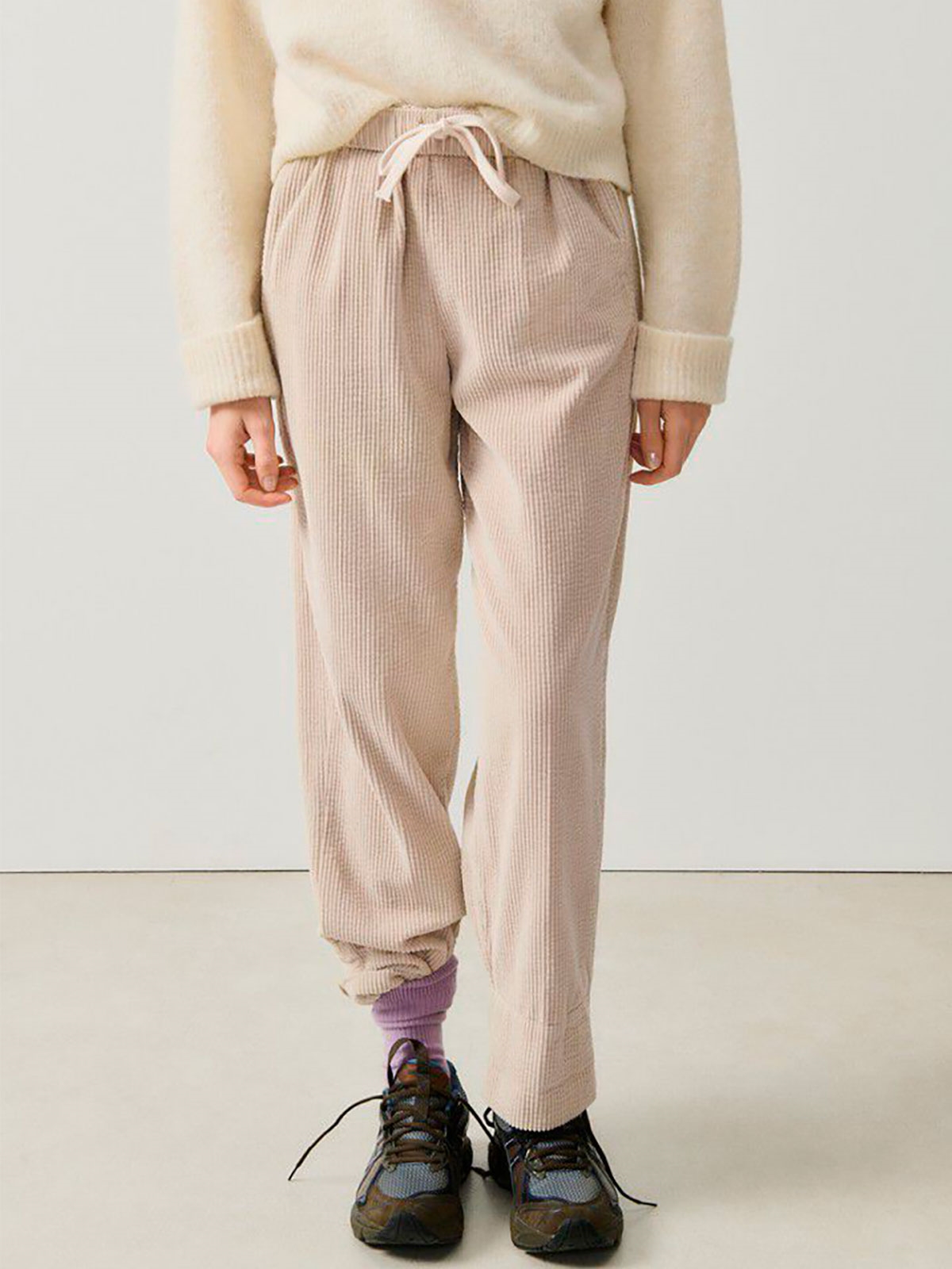 Bløde fløjls bukser fra American Vintage. Bukserne har vidde i benene, skrå lommer samt elastik i taljen.