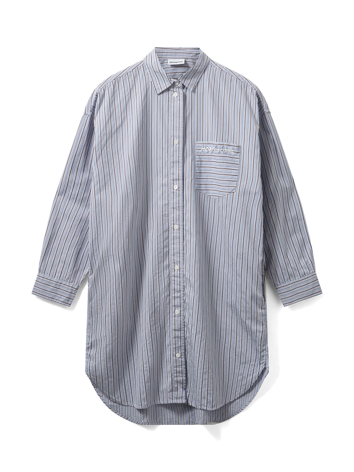 Stribet skjortekjole fra H2OFagerholt. Kjolen har krave og lukkes med knapper. Den har en påsyet rystlomme med broderet logo.