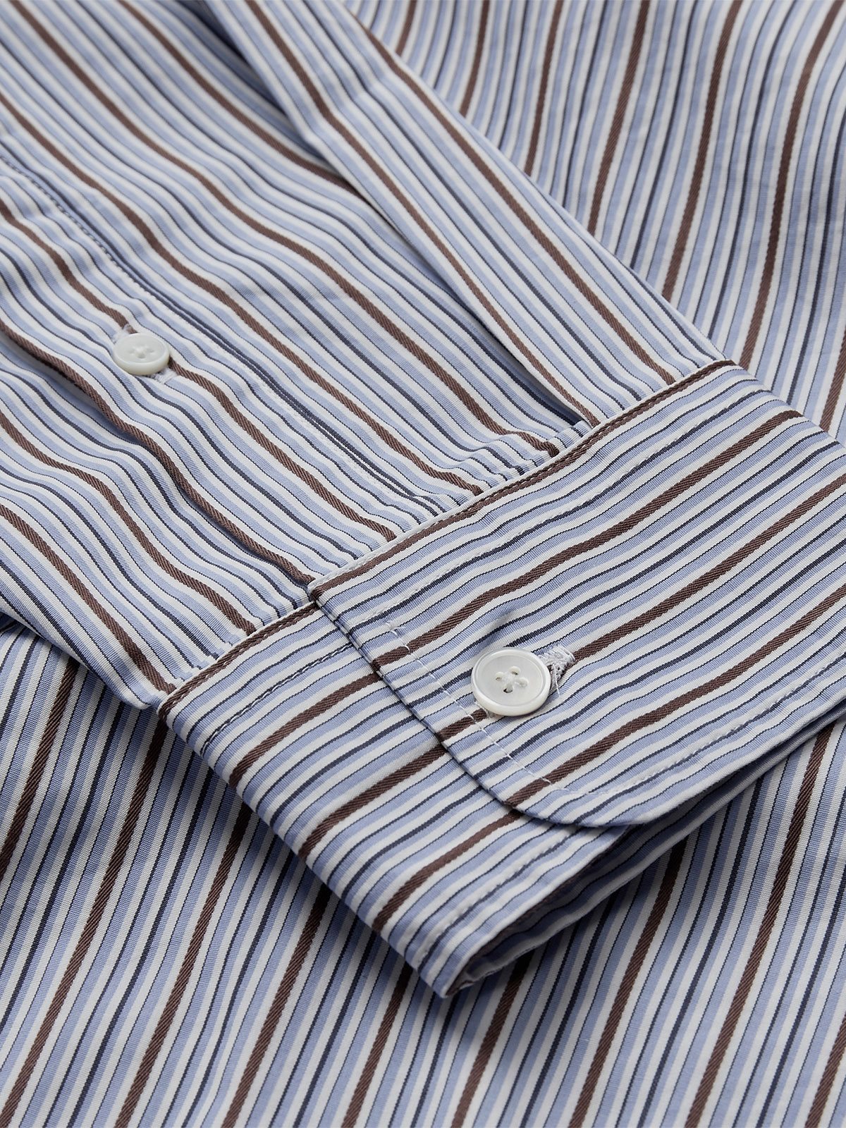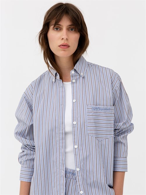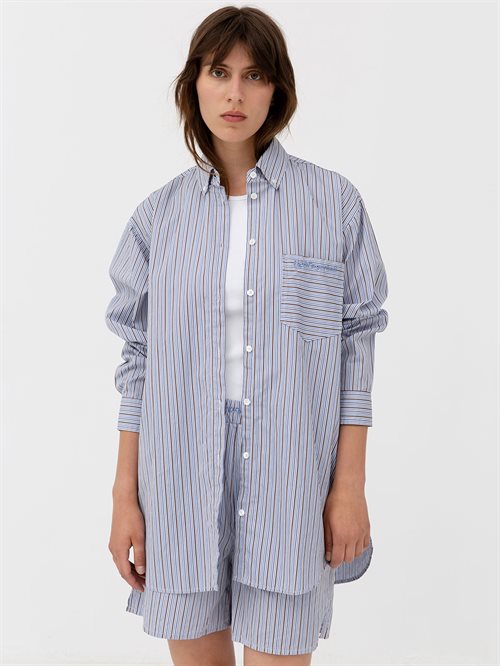 Stribet skjorte fra H2OFagerholt. Skjorten har krave og lukkes med knapper. Den har en påsyet rystlomme med broderet logo.