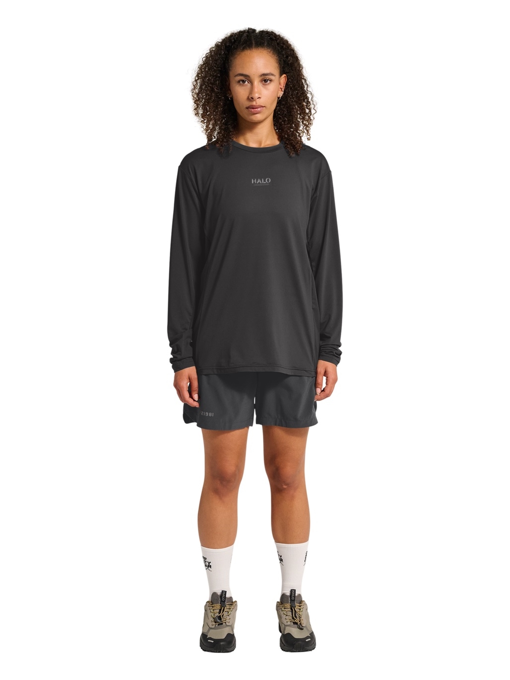 T-shirt fra HALO. T-shirten har rund hals og lange ærmer. Den har Reflekterende logo på brystet og print på ryggen. T-shirten er lavet i  4-vejs stretch materiale og som også er let og åndbart. Den har kontrastpaneler for ventilation samt Quick-dry teknologi.