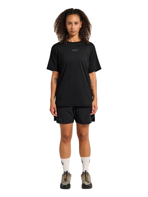 T-shirt fra HALO. T-shirten har rund hals og korte ærmer. Den har Reflekterende logo på brystet og print på ryggen. T-shirten er lavet i  4-vejs stretch materiale og som også er let og åndbart. Den har kontrastpaneler for ventilation samt Quick-dry teknologi.