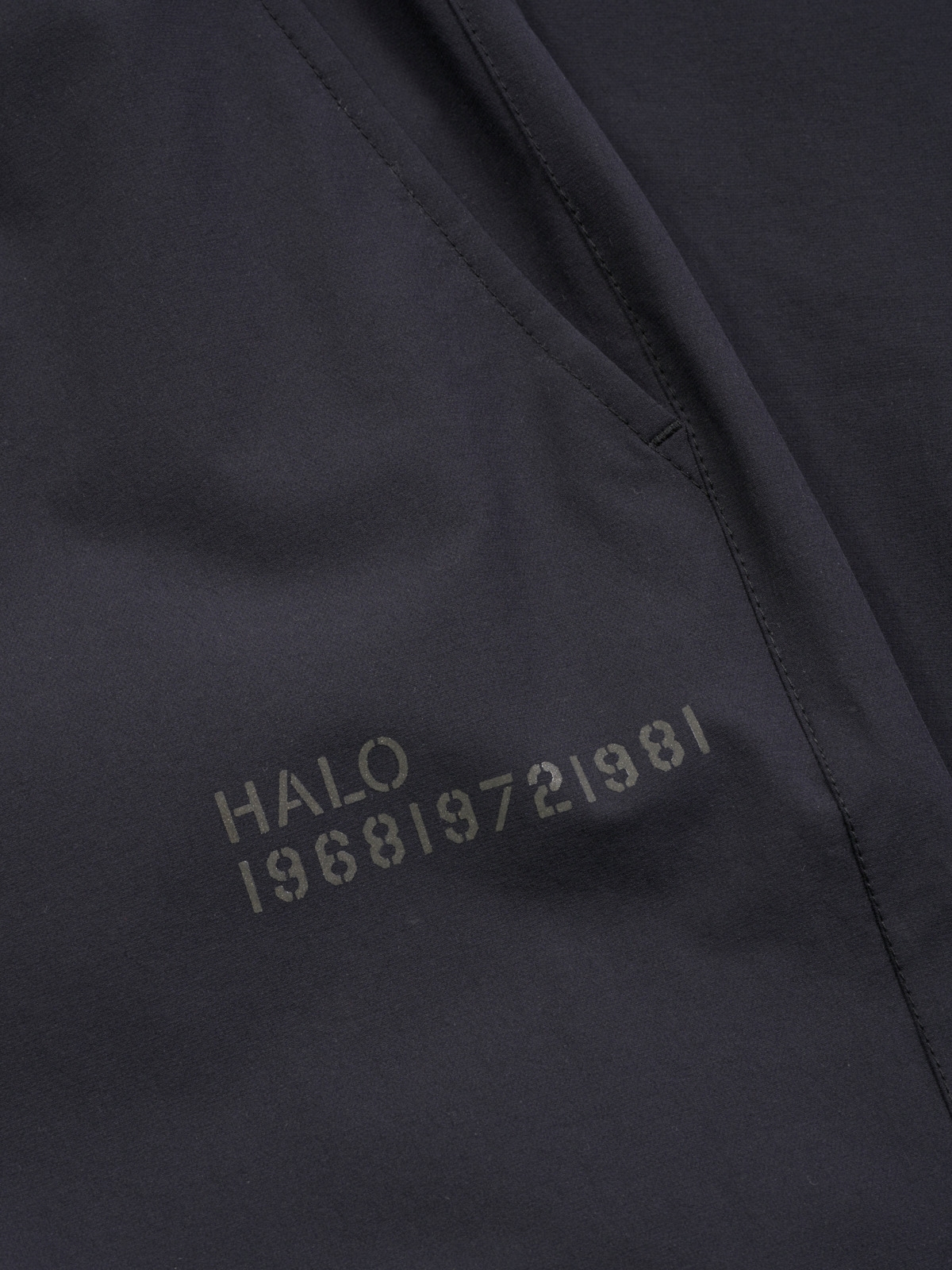 Bukser fra HALO. Bukserne har to skrå lommer i siderne samt lynlås lomme på højre ben. Logo printet på venstre lår. Bukserne har skjulte baglommer. De lukkes med lynlås og knap og har elastik og snøre i taljen for ekstra komfort. De er fremstillet i slidstærkt nylonstof og har fluorfri BIONIC FINISH® ECO imprægnering.