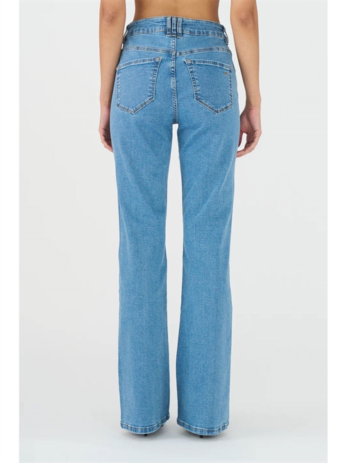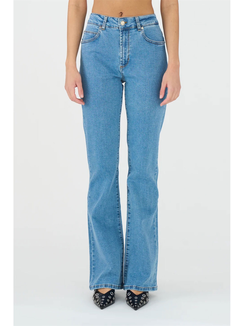 Jeans fra IVY Copenhagen. Jeansene har høj talje og bootcut. De har stretch og lukkes med lynlås og knap. Bukserne har lommer foran og bagpå. Tætsiddende pasform.