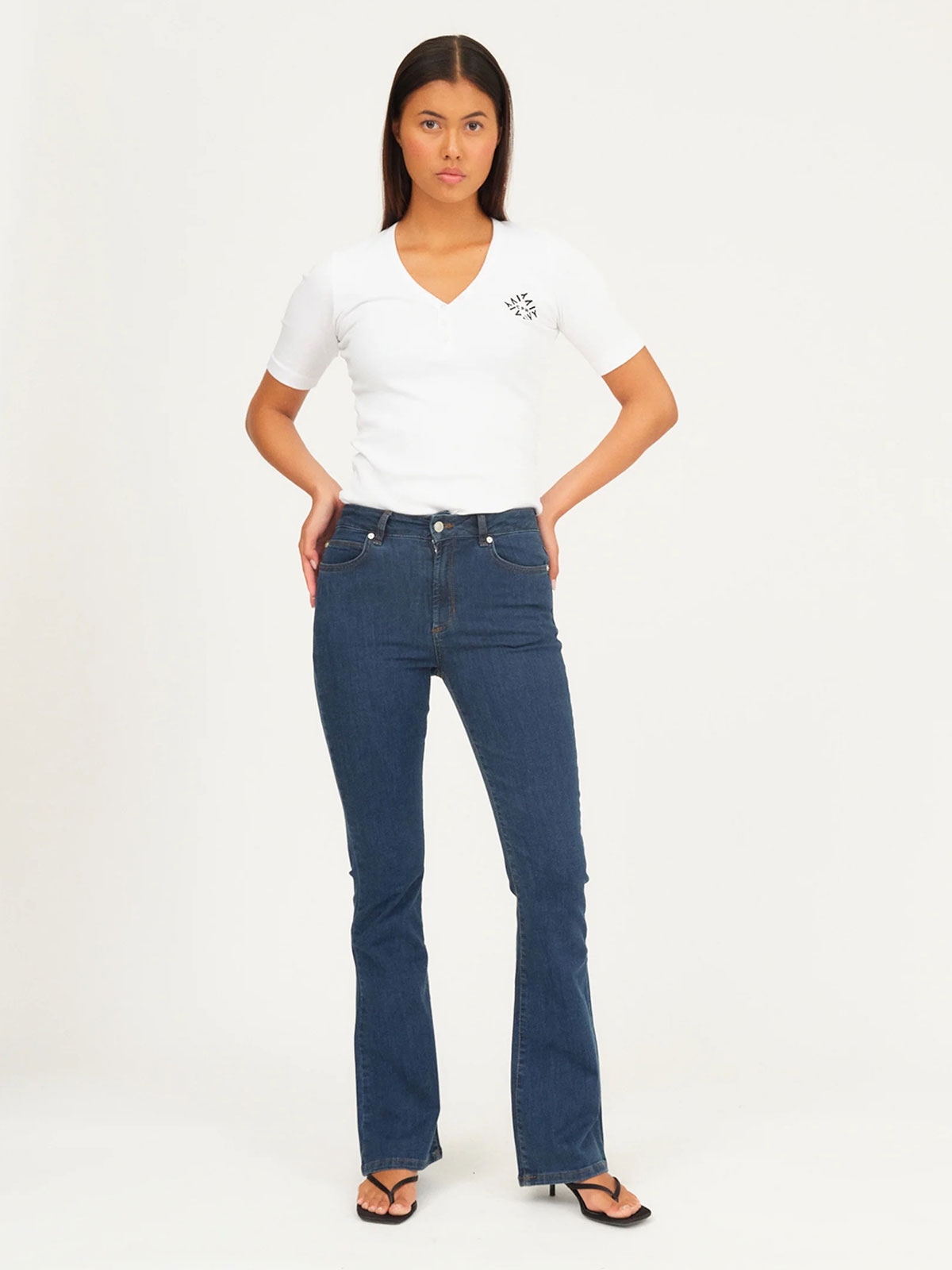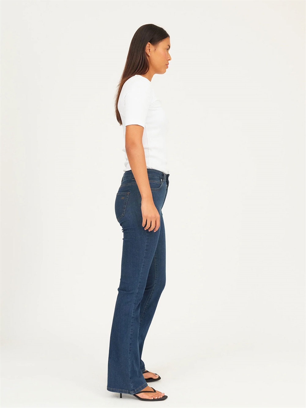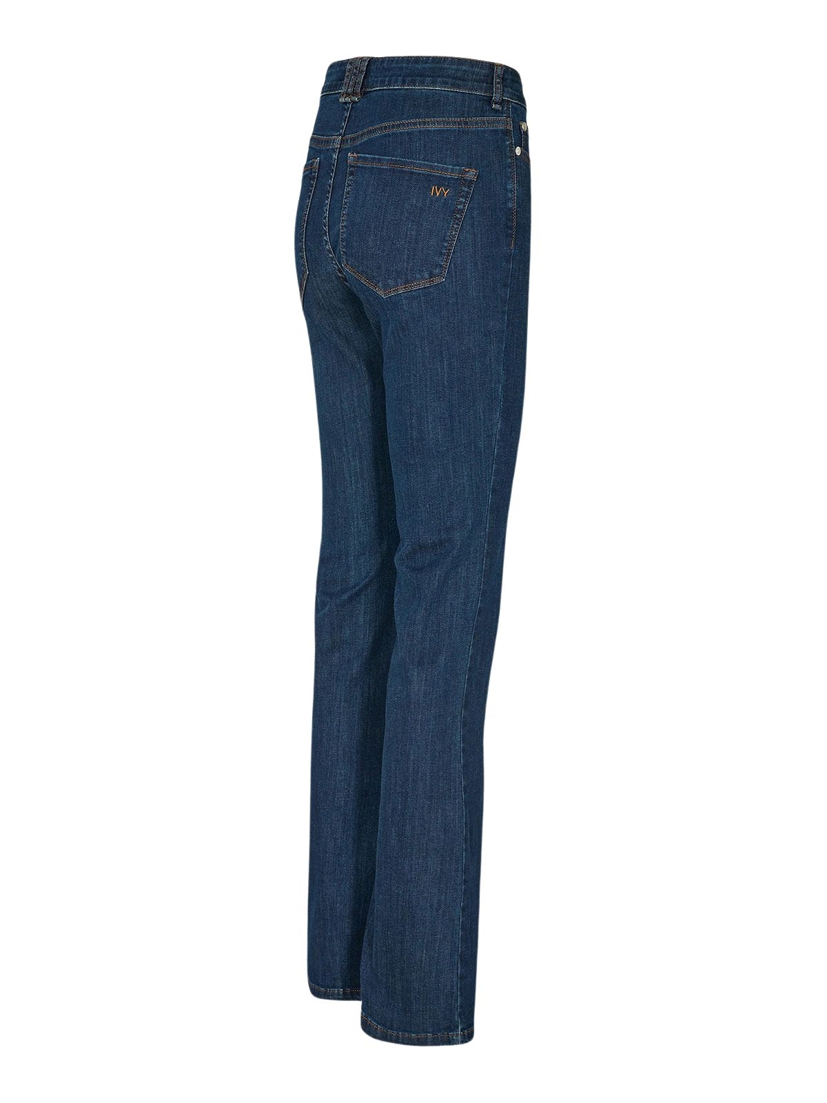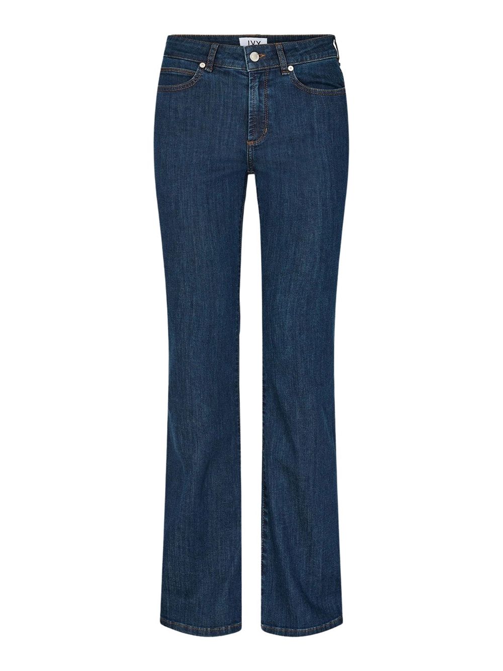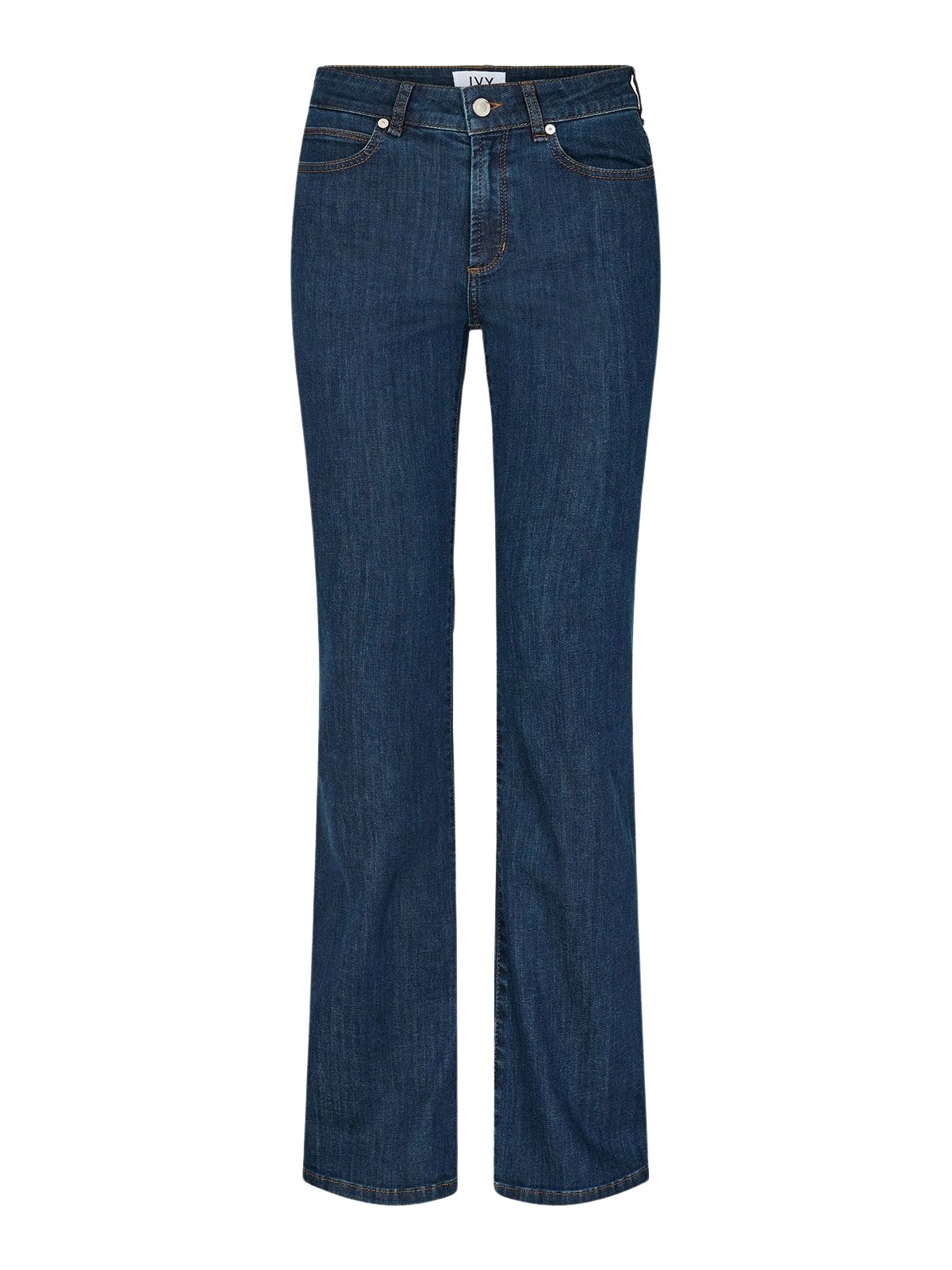 Jeans fra IVY Copenhagen. Jeansene har høj talje og bootcut. De har stretch og lukkes med lynlås og knap. Bukserne har lommer foran og bagpå. Tætsiddende pasform.