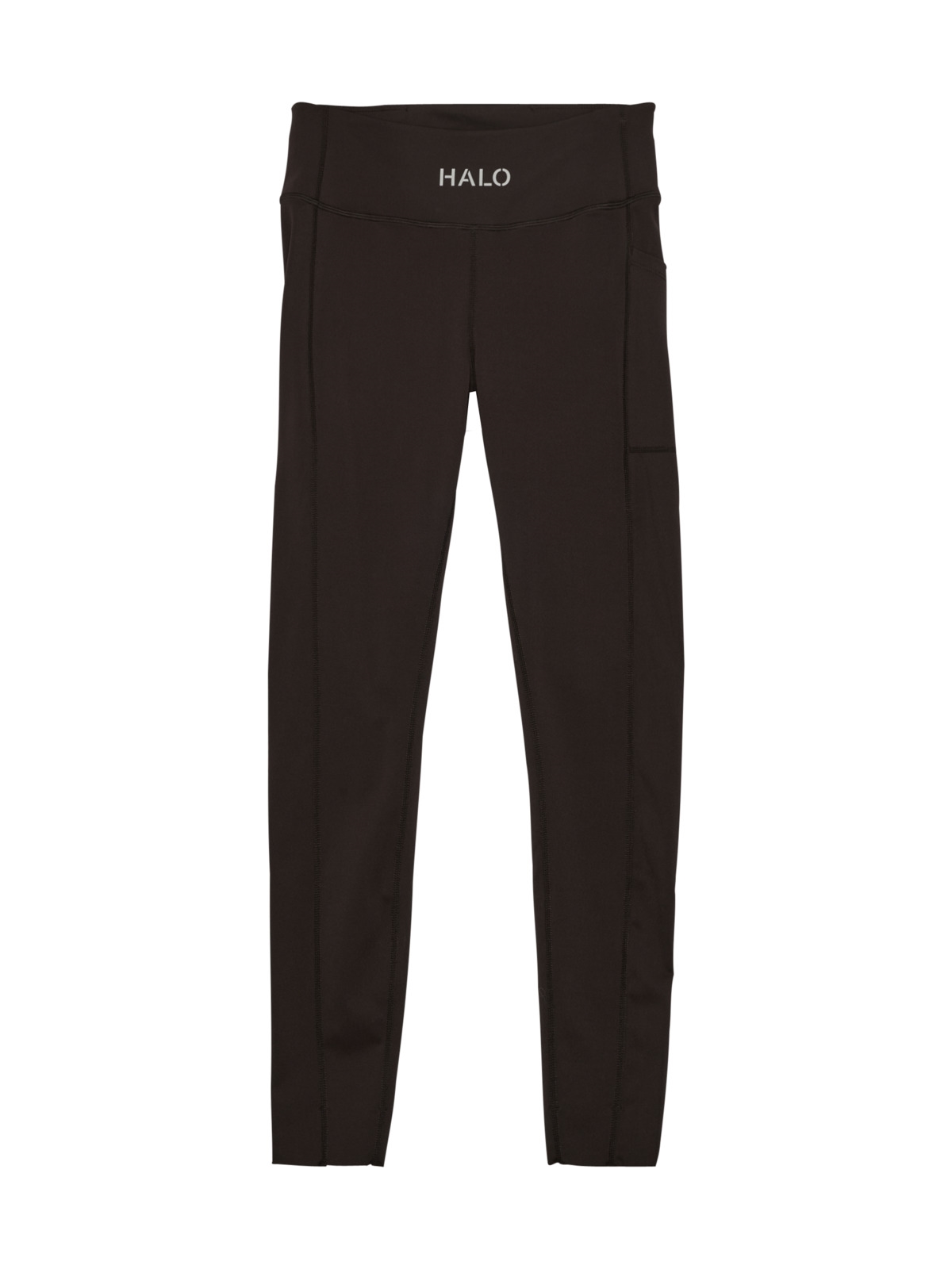 Tights fra HALO. Disse tights har reflekterende tryk foran samt bag på højre ben. De er fremstillet i behageligt jersey stof, som giver god fleksibilitet. De har en mobil lomme i venstre side samt baglomme på indersiden.