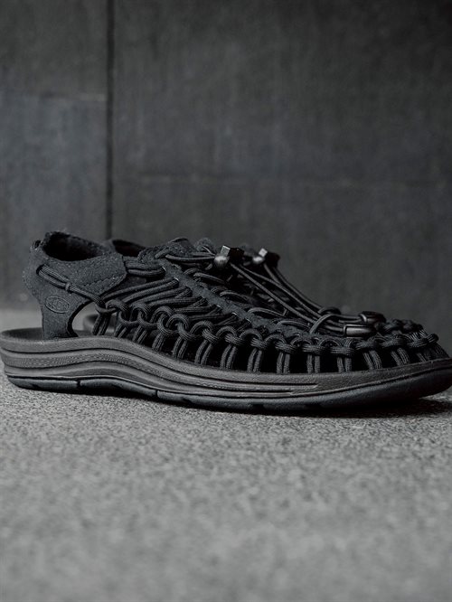 Uneek sandal fra Keen. De har fri bevægelige snorforbindelser som gør det muligt for overdelen at tilpasse sig foden.  Indlægssålen samt hæl remmen er betrukket med microfiber. Snøren er lavet af flettet polyester med en nylon kerne som gør snøren slidstærk.
