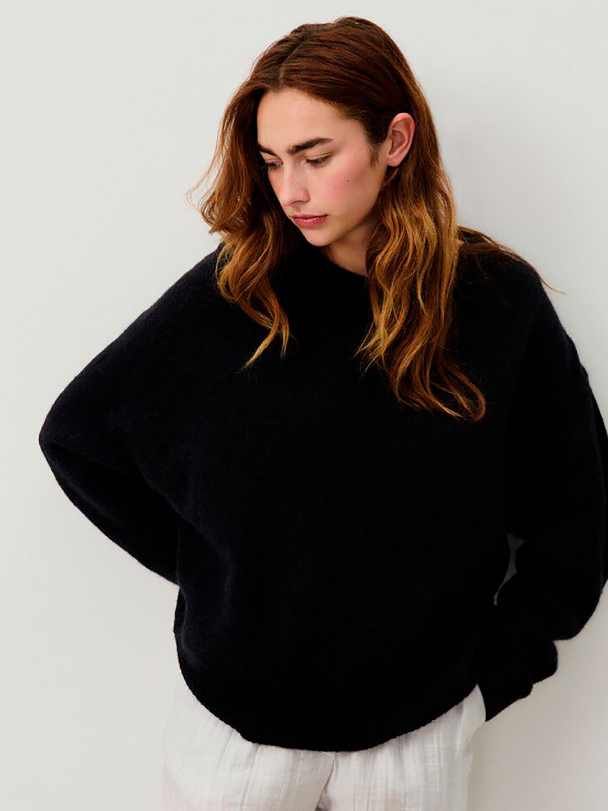 Strik fra American Vintage. Strikken har lange ærmer, rund halsudskæring og opsmøg på ærmerne. Almindelig pasform