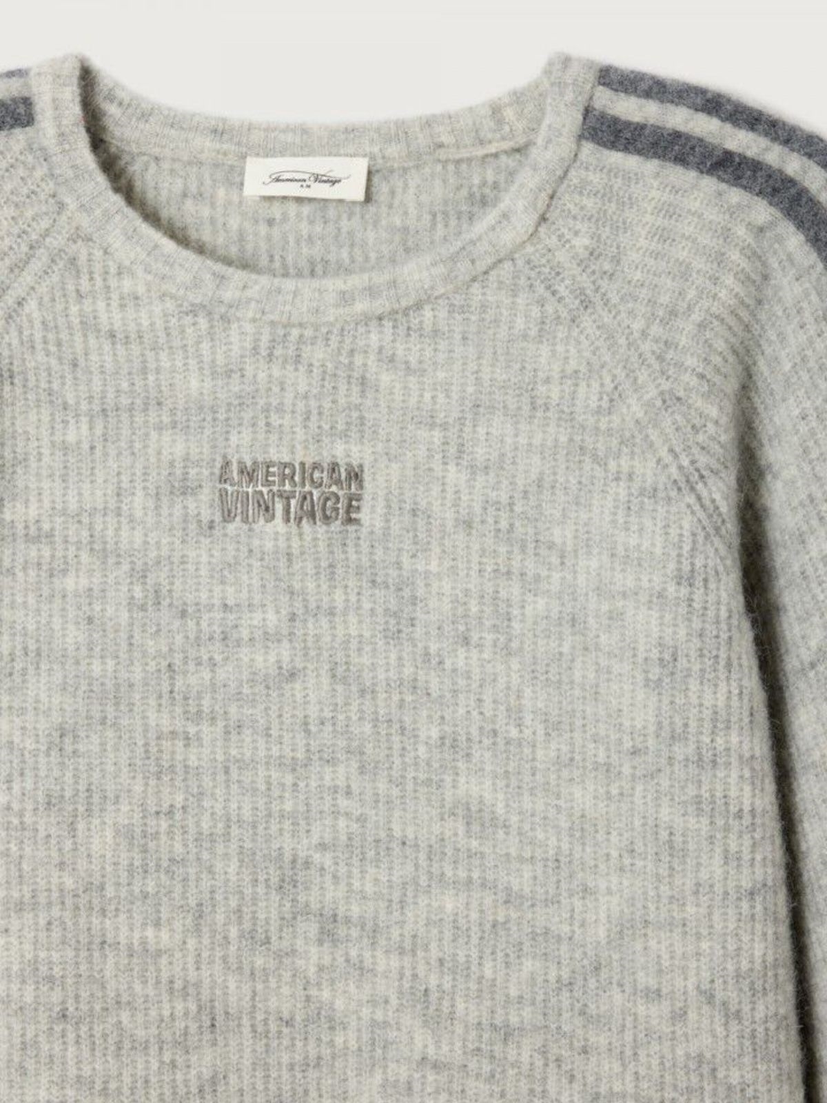 Cardigan fra American Vintage. Denne strik har rund hals, korte ærmer og detaljer på ærmerne. Logo på brystet.