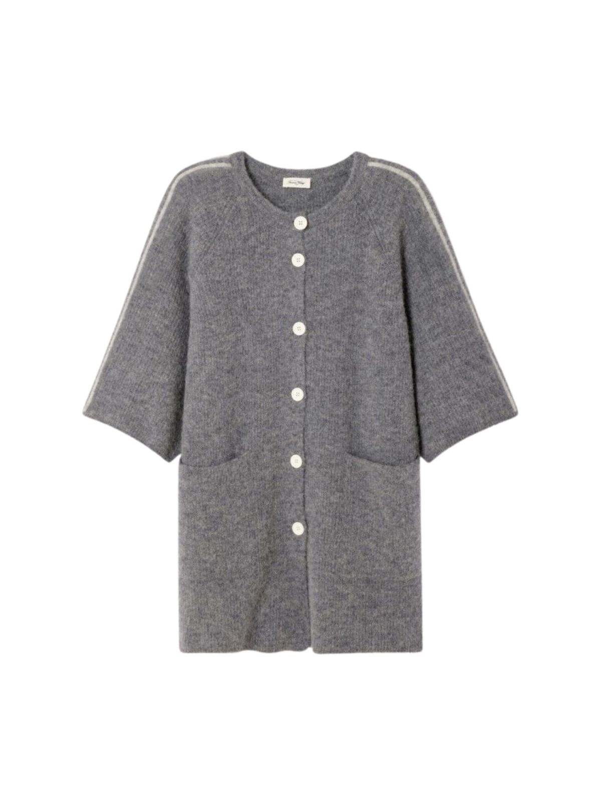 Cardigan fra American Vintage. Denne strikket cardigan har rund hals, korte ærmer og lukkes med knapper. Logo på ryggen.