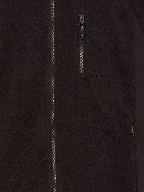 Vindtæt fleece jakke fra HALO. Jakken er i blød fleece med høj hals og den lukkes med lynlås. Jakken har to skrå lommer i siderne samt en brystlomme der alle lukkes med lynlås. Den har kontrastpaneler i siden og en justerbar kant med snøre. Logo broderet på brystet og bagpå.