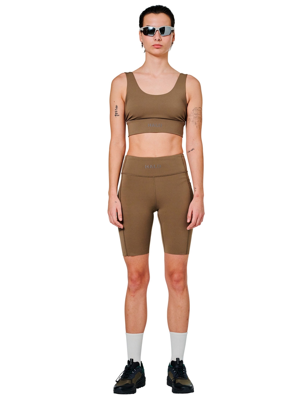 Shorts fra HALO. Disse tætsiddende shorts har reflekterende tryk foran samt bag på højre ben. De er fremstillet i behageligt jersey stof, som giver god fleksibilitet. De har en mobil lomme i venstre side samt baglomme på indersiden.