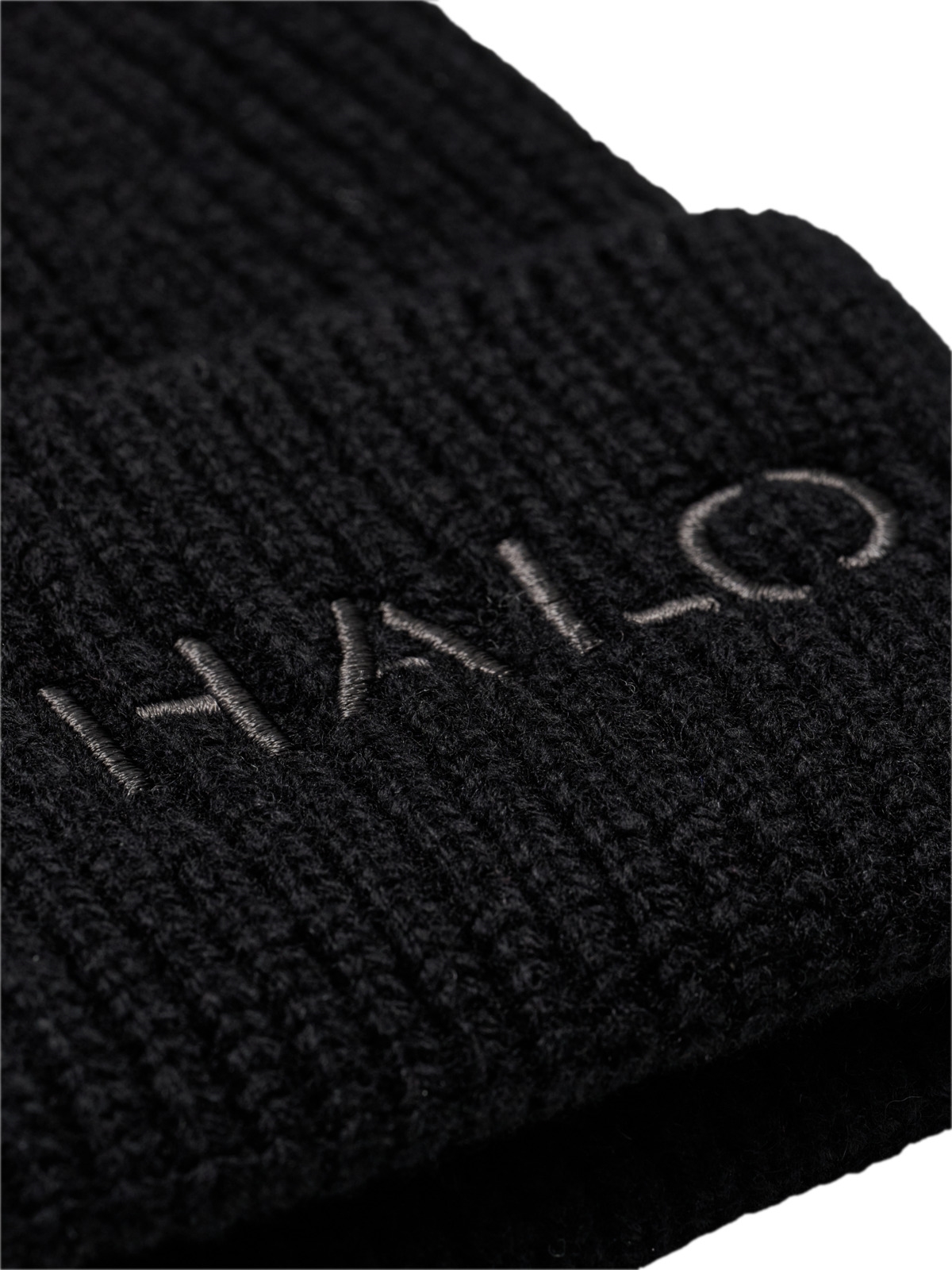 Klassisk uld hue i rib strik fra HALO. Denne hue er i 100% uld som gør den temperaturregulerende og giver en naturlig varme. Den har broderet logo foran og foldet kant. Onesize.