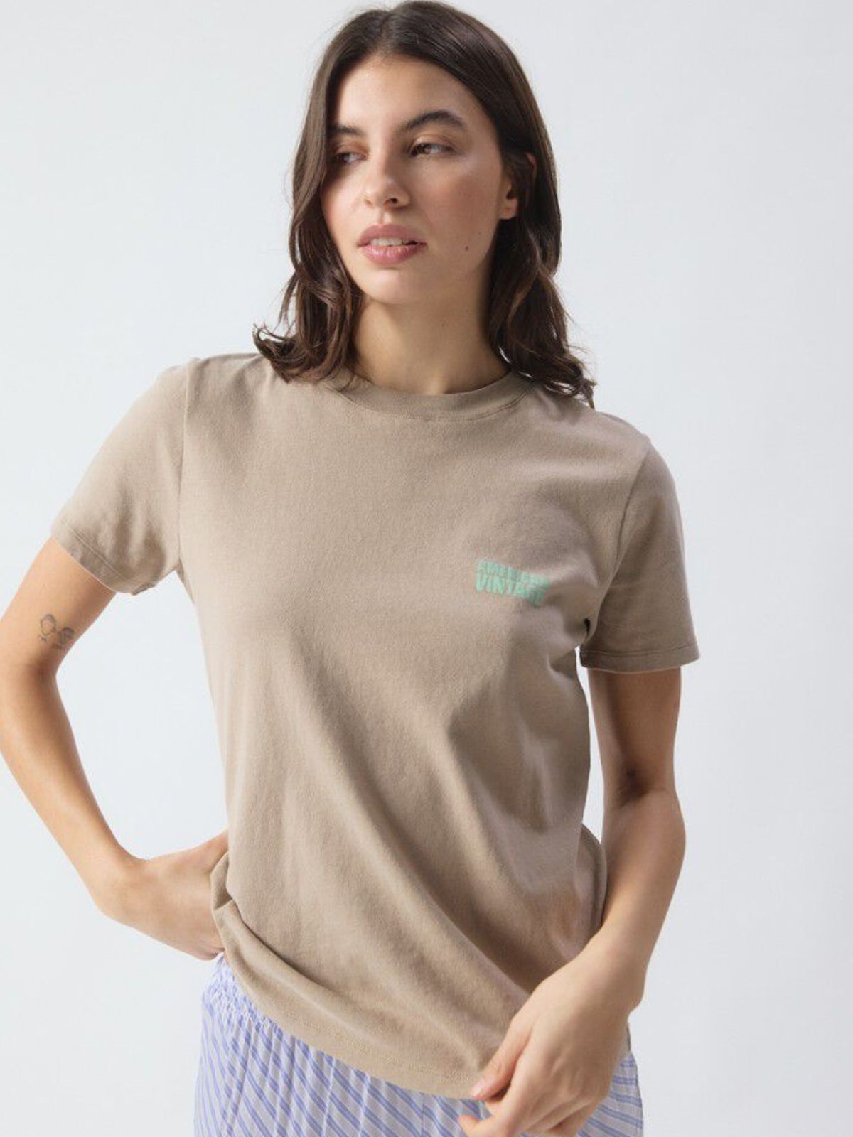 T-shirt fra American Vintage. T-shirten har rund hals, korte ærmer og logo printet på brystet. Normal pasform